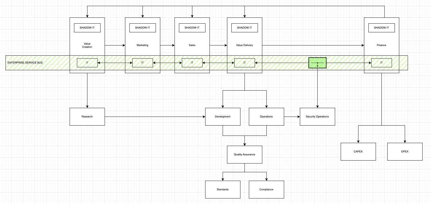 An Enterprise Service Bus is an abstract concept, even though concrete implementations exist. An ESB collects, collates and aggregates information flowing through an organization. Collated data is forwarded to the Security Operations Center (SOC). IT that does not forward monitoring and logging information to the SOC is considered Shadow IT